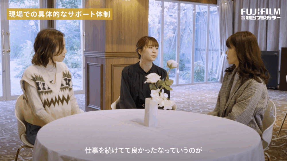 どうしても前もって休まないといけないとか、穴が開いてしまうんですけど、そういう時に皆さんも手を差し伸べてくれて、「代わりにあれやろうか」とか「今日この予定、代わりにできるから」とかサポートがすごく助かってて安心して休めるな、ではないですけど私がいなくても仕事はやってくれるんだっていう